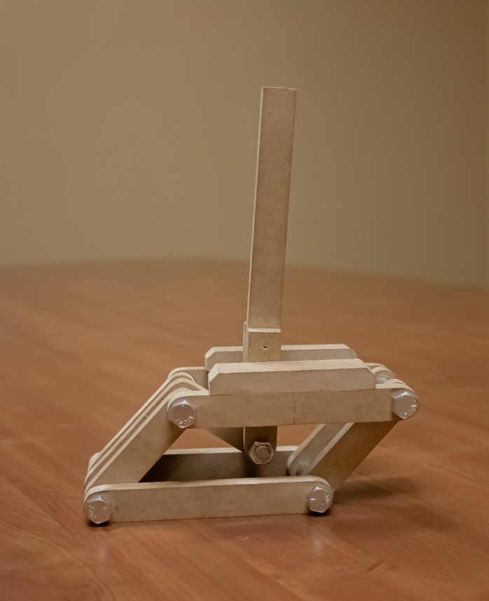Pictured below is an articulating arm mechanism that was prototyped as a wear testing machine. This mechanism was mechanically engineered by our in-house Mechanical Design & Engineering Department. Using the aforementioned rendering, a composite wooden prototype was produced to show the small-scale effectiveness of the mechanism.