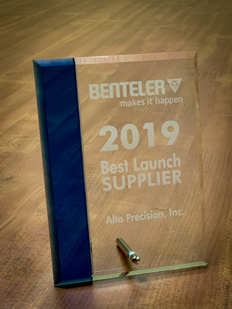In 2019 Benteler Industries recognized Alto Precision as the Best Launch Supplier for North America
